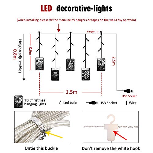 ♥ Nuova Luci Natalizia 54 led con Presa USB, 1,5 metri e 5 pendenti in acrilico, altezza 70 cm.