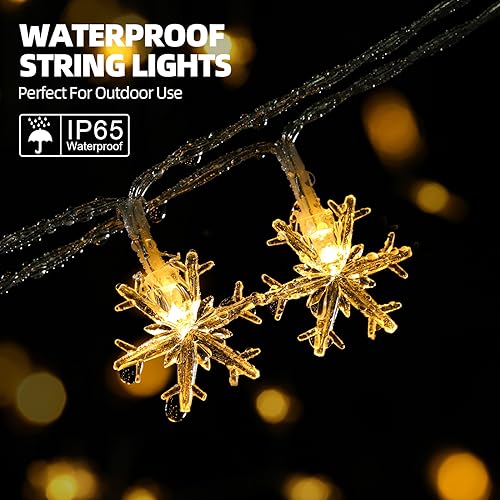BLOOMWIN Catena Luminosa Solare Luci Solari Esterno Fiocchi di Neve 6.5M 30 LED con Pannello Solare Luce Stringa Impermeabile 8 Modalità Luci Decorative Natale