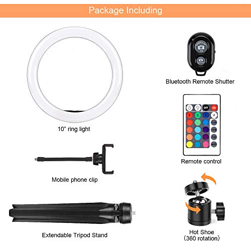 BLOOMWIN Ring Light 10" con Treppiedi Regolabile RGB Luce ad Anello Dimmerabile LED con Telecomando 5 Livelli di Luminosità Luce per Video Youtube Luce per Selfie