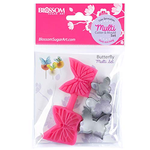 Blossom Sugar Art Butterfly Multi Set Incluso Stampo in Silicone e formine, Rosa, Set di 4