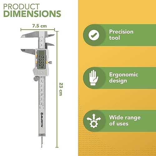BLOSTM Calibro digitale a corsoio da 150mm - Calibro digitale elettronico preciso in acciaio inossidabile con schermo LCD XL, calibrato entro 1/64"- Pinze strumento di misura SAE metrico o frazionario