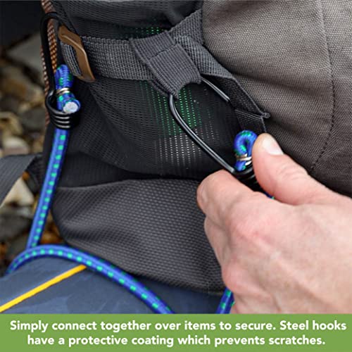 FACILE E VELOCE DA USARE - Non potrebbe essere più facile usare queste corde elastiche elastiche. Collegati semplicemente tra loro sugli elementi per metterli in sicurezza. Possono essere utilizzati insieme per creare una lunghezza maggiore, offrendo flessibilità per tutte le attività.