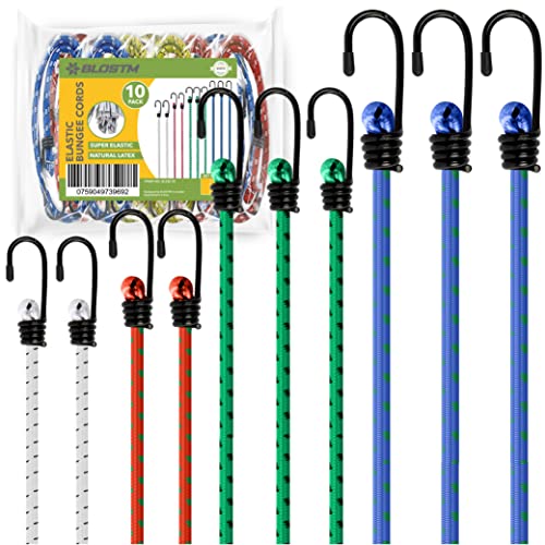 BLOSTM Corda Elastica Con Gancio Set Di 10 Assortiti Tiranti Elastici Con Gancio Per Campeggio, Giardinaggio, Bicicletta, Bagagli, Multicolore - 2pcs x 40cm, 2pcs x 70cm, 3pcs x 81cm, 3pcs x 102cm