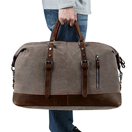 BLUBOON Borsone da Viaggio per Sport di tela e pelle Borsa Weekend Bag Uomo/Donna Vintage (Caffè)