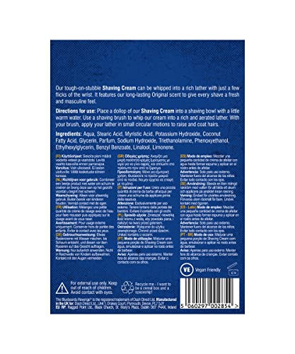 VEGAN FRIENDLY & CRUELTY FREE: This traditional shaving cream for men has been carefully formulated to include no animal products and is 100% vegan friendly. The Bluebeards Revenge does not test on animals, making this essential men's shaving product 100% cruelty free too.