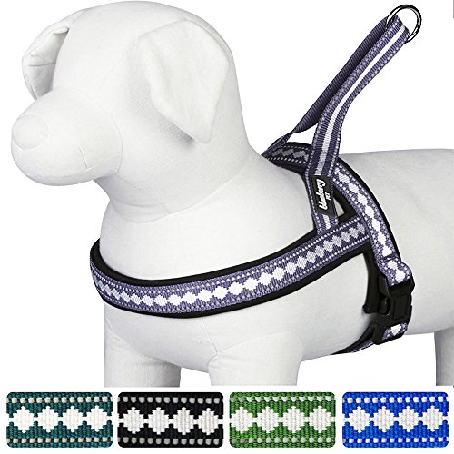 Blueberry Pet Classic Solid Purple Grey Jacquard Neoprene Padded Dog Harness, Chest Girth 55-70cm