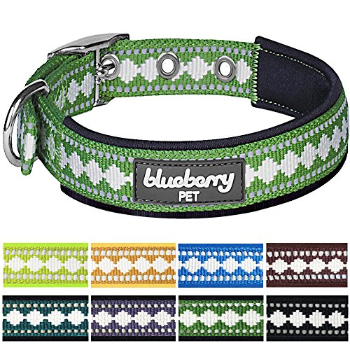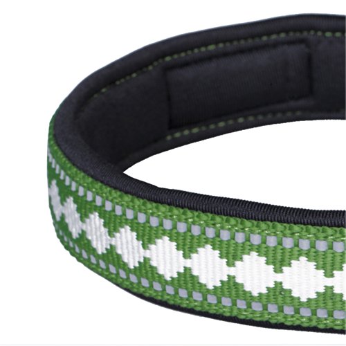 Blueberry Pet Soft & Comfy Neoprene Padded Dog Collar in Moss Green with Jacquard Pattern, Large