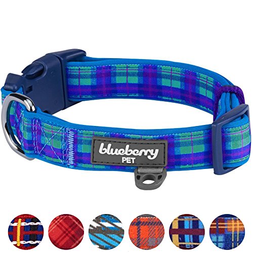 Blueberry Pet Soft & Comfy Scottish Hudson Blue Plaid Tartan Style Designer Padded Dog Collar, Small, Neck 30cm-40cm, Adjustable Collars for Dogs