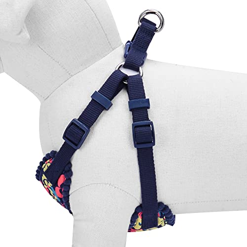 Blueberry Pet Made Well Profound Floral Print Dog Harness Vest in Navy Blue, Chest Girth 35cm-41cm, Neck 35cm-40.5cm, X-Small, Adjustable Harnesses for Dogs