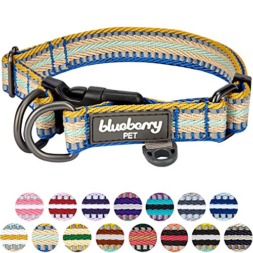Blueberry Pet 3M Reflective Multi-Colored Stripe Ginger And Blue Dog Collar, Neck 37cm-50cm, Medium