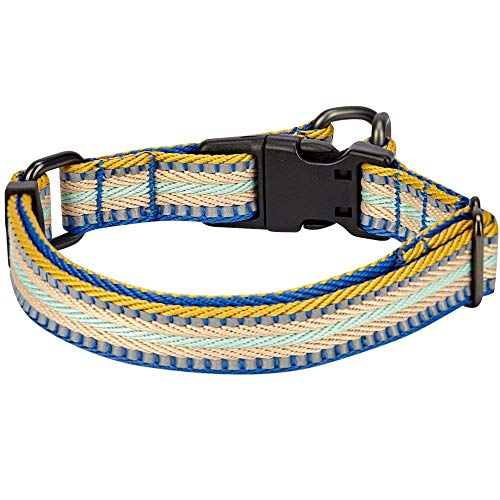 Blueberry Pet 3M Reflective Multi-Colored Stripe Ginger And Blue Dog Collar, Neck 45cm-66cm, Large