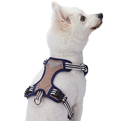 Blueberry Pet 3M Reflective Multi-colored Stripe Padded Dog Harness Vest in Olive & Blue-gray, Small