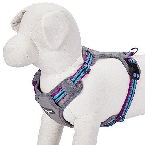Blueberry Pet 3M Reflective Multi-colored Stripe Padded Dog Harness Vest in Violet & Celeste, Small