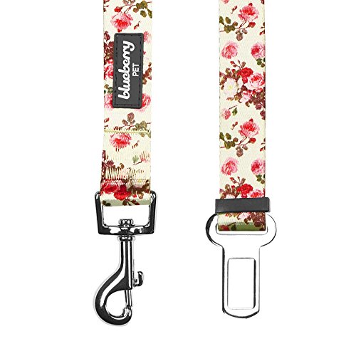 Blueberry Pet Spring Scent Inspired Pink Rose Print Ivory Adjustable Dog Seat Belt Tether for Dogs Cats, Durable Safety Car Vehicle Seatbelts Leads Use with Harness