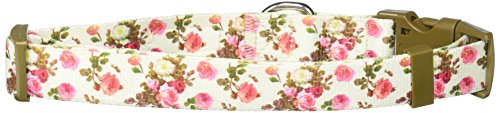 Blueberry Pet Spring Scent Inspired Pink Rose Print Ivory Dog Collar, Large, Neck 45cm-66cm, Adjustable Collars for Dogs