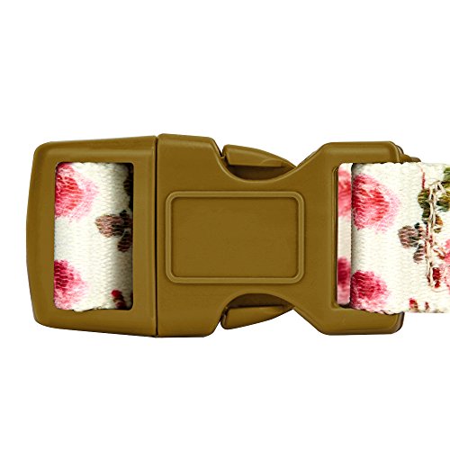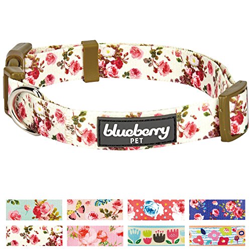 Blueberry Pet Spring Scent Inspired Pink Rose Print Ivory Dog Collar, Small, Neck 30cm-40cm, Adjustable Collars for Dogs