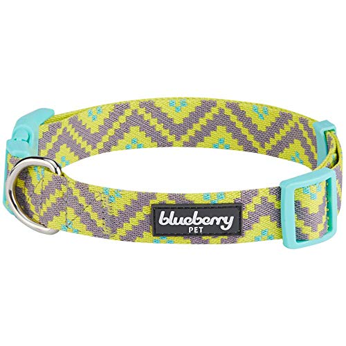 Blueberry Pet Tribal Pattern Inspired Stunning Zigzag Dog Collar, Bright Yellow, Small, Neck 30cm-40cm, Adjustable Collars for Dogs