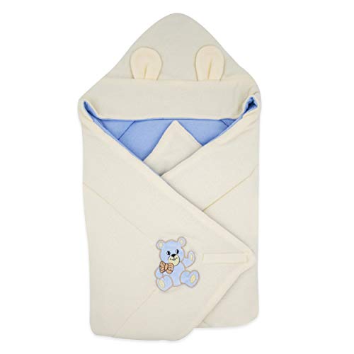 BlueberryShop Thermo Terry coperta con cappuccio per avvolgere il bambino | Sacco a pelo per neonati | Regalo ideale per il Baby Shower | 78 x 78 cm | Blu