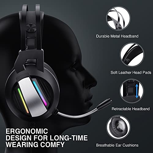 【Design LED RGB Ultramoderno】Le cuffie sono progettate con luci a LED che possono convertire automaticamente 7 colori per evidenziare l'atmosfera di gioco e offrirti un'esperienza di gioco coinvolgente. (USB viene utilizzato solo per illuminare la luce LED e non influisce sul normale funzionamento dell'auricolare.)