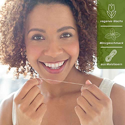 BlueFox I filo interdentale sostenibile I senza plastica, filo interdentale vegano in fibra di mais in vetro, con cera vegetale naturale, senza plastica, 2 x 30 metri di manutenzione dei denti