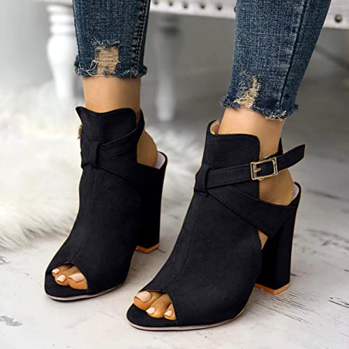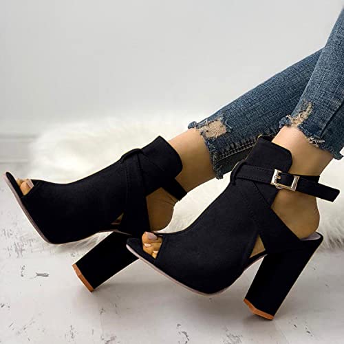 Bluelucon Sandali estivi da donna con zeh aperto, alla moda, eleganti, in pelle scamosciata, con tacco alto, comodi, antiscivolo, con piattaforma, sandali
