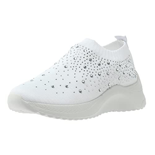 Bluelucon Scarpe da ginnastica da donna, estive, eleganti, sportive, comode, da corsa, da jogging, da corsa, per il tempo libero, bianco, 36 EU