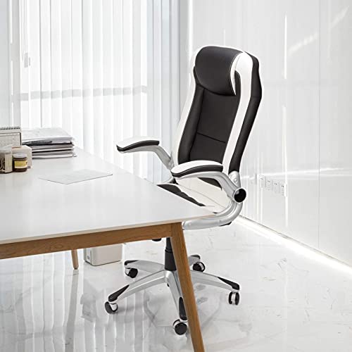 Materiali di alta qualità: La sedia da ufficio è realizzata in pelle PU di alta qualità e imbottita con spugna ad alta densità. Il tessuto in poliuretano di alta qualità è morbido e confortevole, ha una forte flessibilità, resistenza all'abrasione ed è facile da pulire.