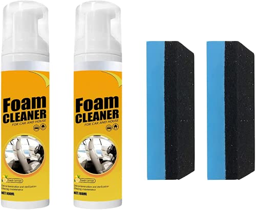 Bluesa 2PCS Foam Cleaner for Car And House Lemon Flavor,Cleaner Car Interior Schiuma di Pulizia per la casa Auto Foam Cleaner Pulizia Agente detergente con Pennello Spugna