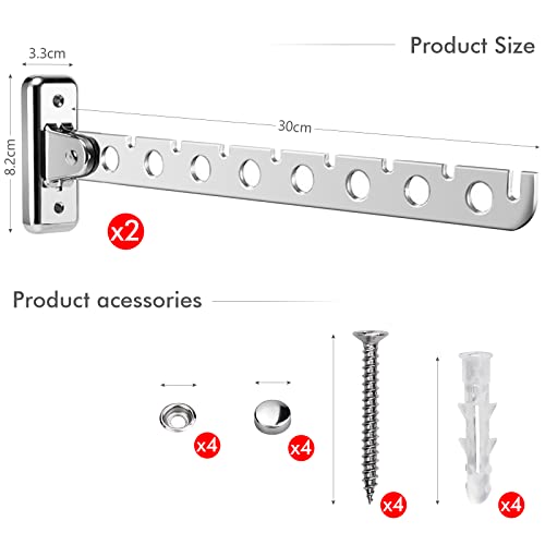 ✎【CONTENUTO DELLA CONFEZIONE】: 2 appendiabiti a scomparsa, lunghezza: 30 cm, argento, con viti di espansione, accessori completi per soddisfare le tue esigenze.