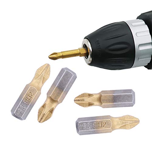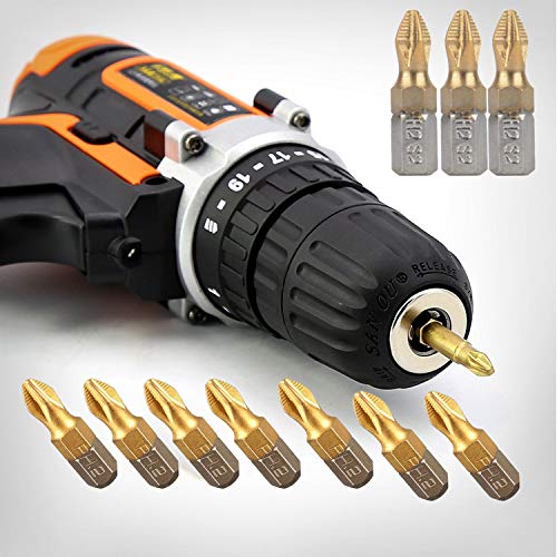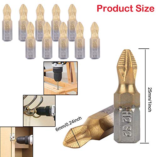 Bluesees - Set di punte per cacciavite in titanio, 10 pezzi, 25 mm, 1/4", codolo in lega di titanio, anti-salto PH2, cacciavite a croce magnetica, punta per trapano e trapano con gambo esagonale