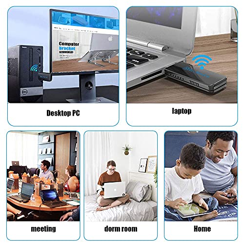 WIFI a doppia banda ad alta velocità: velocità massima di questa scheda wifi fino a 5 GHz 867 Mbps o 2,4 GHz 400 Mbps. Dongle wifi wireless AC1300 ultraveloce per la velocità del pc con 802.11ac, ideale per i giochi online e streaming video HD senza interruzioni.