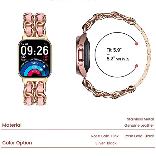 Design: una catena in acciaio inossidabile decorata in pelle è disponibile in cinturini unici dello smartwatch Popglory P66. Con un design a catena e in pelle, questo delicato cinturino da donna è adatto per lo stile casual e business.
