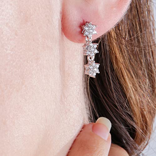 Orecchini pendenti a forma di fiore composti da luminosi zirconi bianchi e da una pratica chiusura a farfallina. Il gioiello è un'ottima idea regalo da realizzare per varie occasioni come compleanni, festa della mamma, regali a maestre o insegnanti.