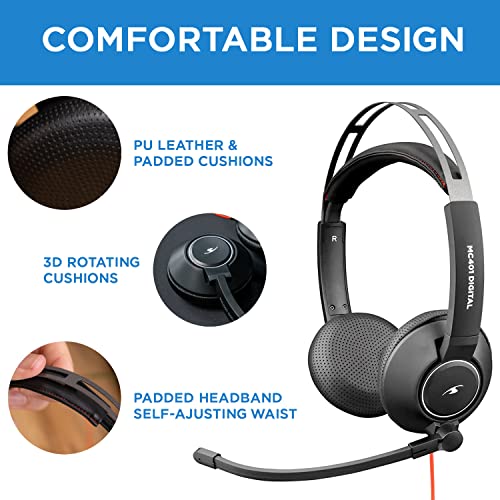 Bluestork MC 401 USB/3.5mm Cuffie per PC con Cavo,Suono Stereo,Microfono Rotante Con Cancellazione Del Rumore,Ultra Comfort,Controllo Del Volume - Cuffie Professionali Leggere Ideali Per Il Telelavoro