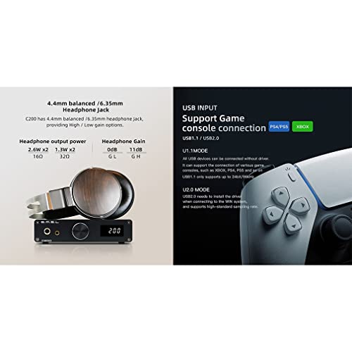 ☆ L'uscita C200 è dotata di uscite per cuffie RCA/TRS/6,35 mm e 4,4 mm. L'uscita per cuffie ha una potenza fino a 32Ω.