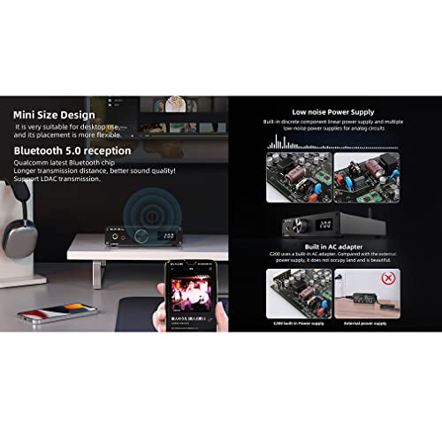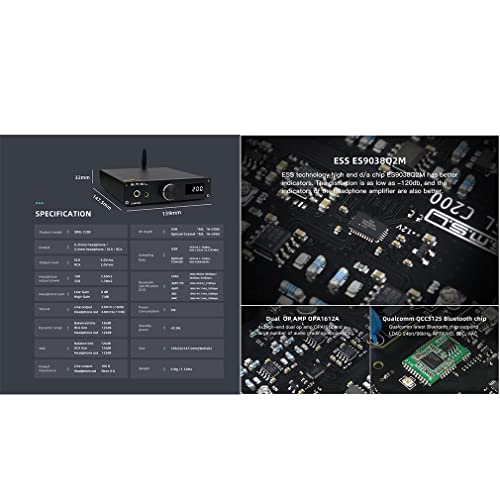 ☆ L'amplificatore per cuffie C200 DAC adotta il chip D/A ESS ES9038Q2M e utilizza XMOS XU216, ingresso USB fino a DoP64, DSD512 e PCM32bit/768kHz.