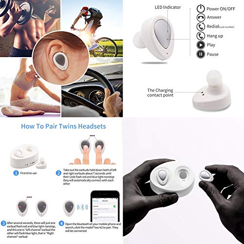 Omee Bluetooth Auricolari Senza Fili Del Trasduttore Auricolare Sport Di Doppio Auricolari Con Scatola Di Ricarica,Whitered
