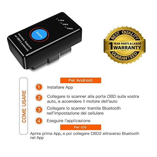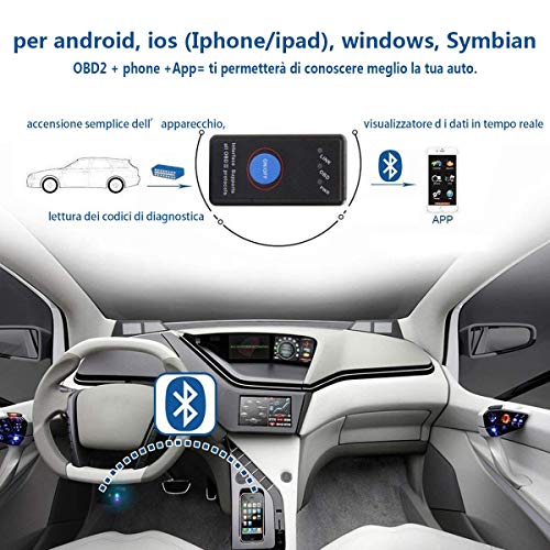 OBD2 Bluetooth 4.0, Bestlinktech 2018 Nuova Versione Diagnosi per Auto, Mini Adattatore Wireless Codice Errore di Scansione per Veicolo - Connessione via Bluetooth a Dispositivi IOS, Android e Windows