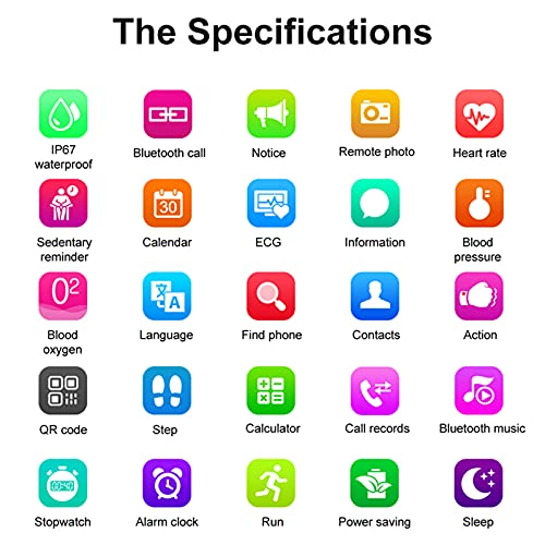 1. Multi-Function: Bluetooth Chiamata, SMS, Facebook, Notifica Twitter, Monitor della frequenza cardiaca, Misurazione della pressione del sangue, Misurazione dell'ossigeno del sangue, Pedometro, Misurazione ECG, IP67 Impermeabile, Monitor del sonno, Controllo della riproduzione della musica del telefono cellulare, sincronizzazione del libro telefonico. .