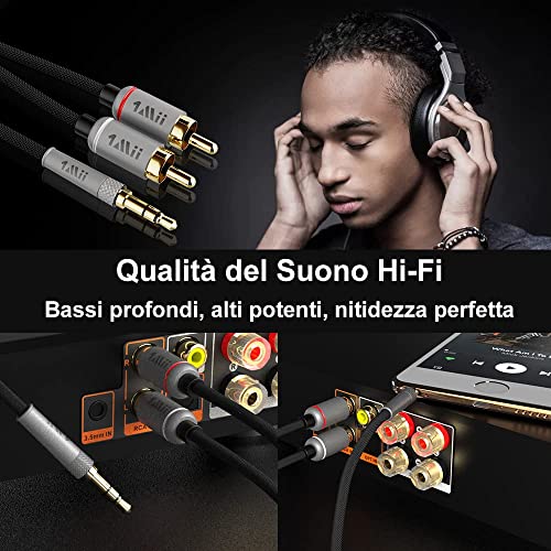 [Crystal HiFi Sound] 1Mii cavo RCA a 3,5 mm professionale, utilizza connettori placcati in oro 24k, guscio in metallo e doppia schermatura per proteggere i segnali audio da interferenze RF, EM e ground loop durante la trasmissione, fornendo un suono hi-fi privo di rumore e cristallino qualità.