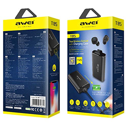AWEI Bluetooth 5.0 T85 TWS cuffie, docking station/Power Bank 1800 mAh Nero