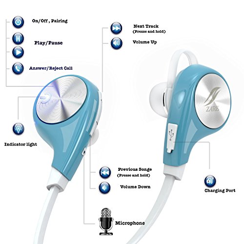 ZARE Bluetooth V 4.1 cuffie stereo senza fili di sport con microfono integrato, cuffie sport resistono al sudore, le cuffie Bluetooth senza fili con tecnologia di riduzione del rumore CVC 6.0 per iPhone, iPod, Samsung, Sony e altri dispositivi Bluetooth (Bianco e Blu)