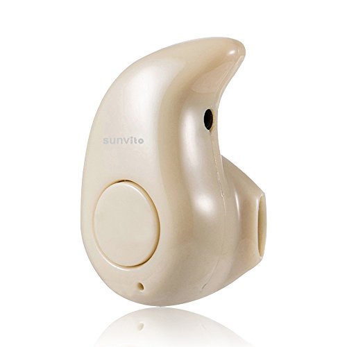 Mini Bluetooth Headset v 4.1 Sunvito Ultra piccolo invisibile Wireless Cuffia Stereo con microfono supporto vivavoce (Beige)