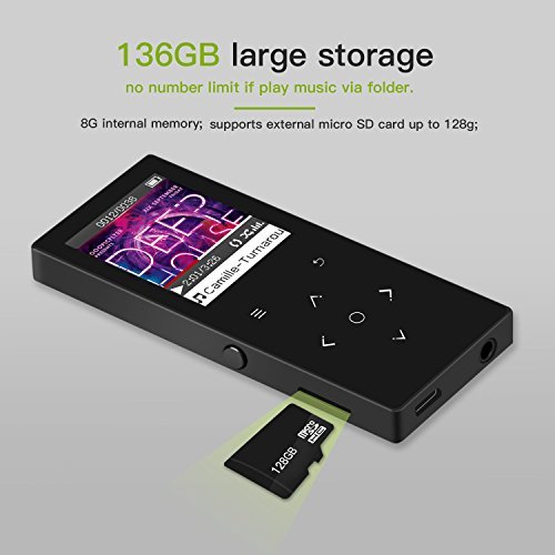 Bluetooth 4,0 Lettore MP3 8GB, Hommie MP3 Player con Pulsanti di Tocco, 1,8 Pollici Schermo Colorato con Radio FM, Registratore Vocale (Supporto fino a 128 GB), Nero