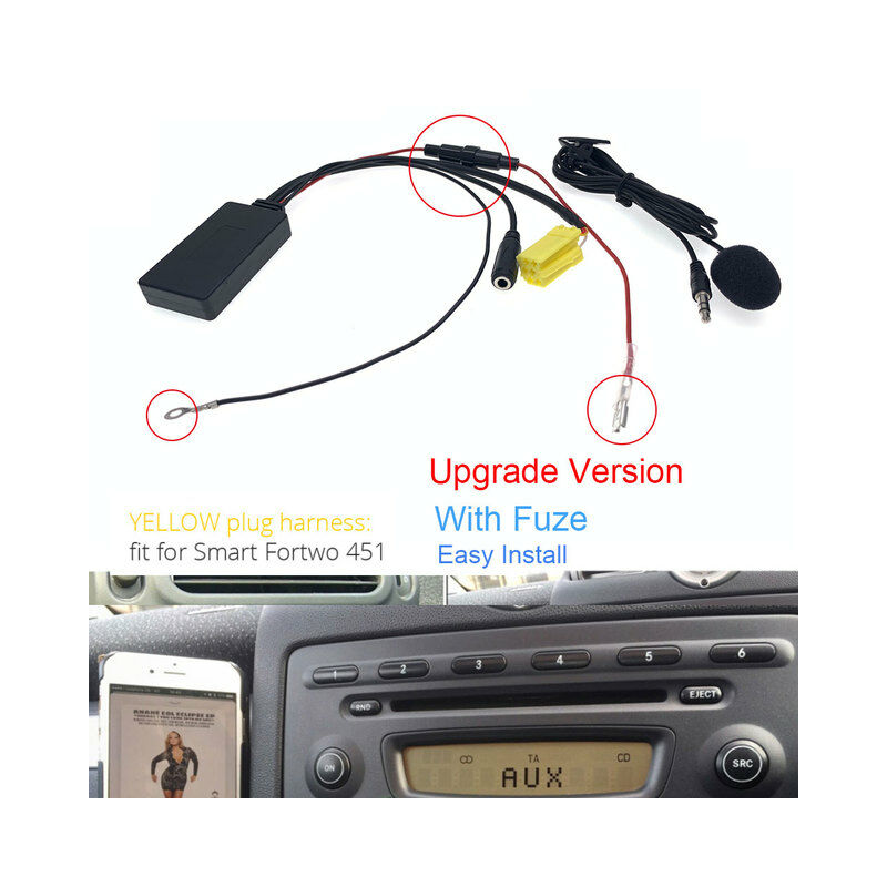 Auto CD Stereo Senza Fili Audio Musica MP3 Modulo Bluetooth Aux Adattatore di Interfaccia Per Mercedes Benz Smart 450 451 Grundig Radio host 8Pin 6Pin Mini ISO Con Il Mic Questo adattatore bluetooth aiuta a giocare la musica del telefono attraverso auto radio, è chiamata di supporto risposta. Descrizioni: 1. Questo cavo è con il modulo Bluetooth. 2. This prodotto è fatto appositamente per il car audio/stereo. 3. Può essere utilizzato con le radio se solo ci è presa per il nostro connettore e ha funzione AUX. 4. Basta collegare il connettore nella parte posteriore della radio, collegare i due fili con 12V + (rosso), 12V-(nero). 5. Scegliere Aux dal pannello e collegare il telefono o mp3 con bluetooth. 6. Si può godere la musica dal telefono cellulare o mp3 pad e altro ancora. (Che del telefono dovrebbe avere la funzione Bluetooth.) 7. Bluetooth versione 5.0, e compatibile con 2.0 3.0 4.0 altre versioni di Bluetooth, in grado di supportare il formato comunemente usato MP3 audio, ma