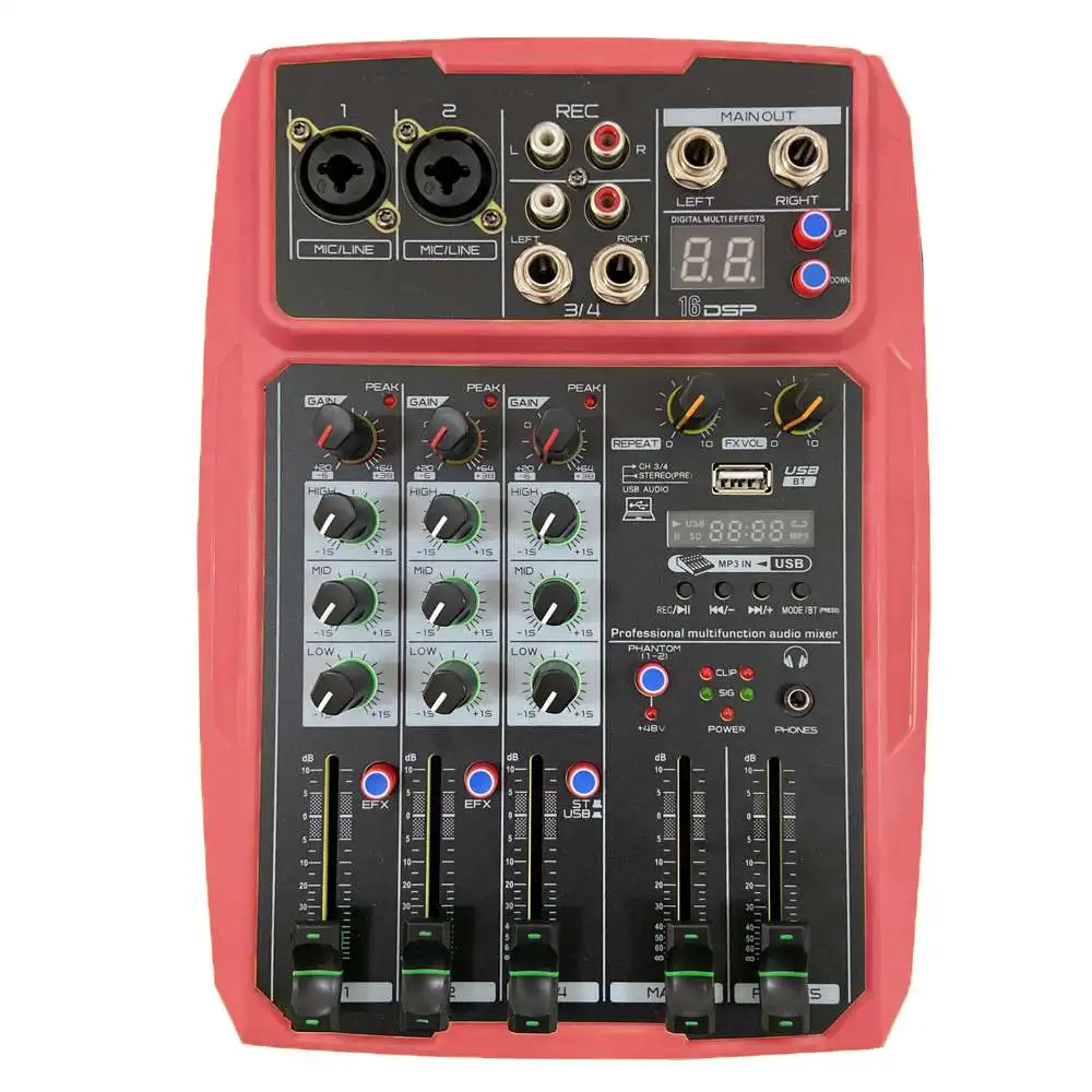 EU 48V Mini Bluetooth Mixer 2 Channel Audio Mixer Console MP3 Player Karaoke KTV USB Computer Recording Delay and Repeat Efferts
