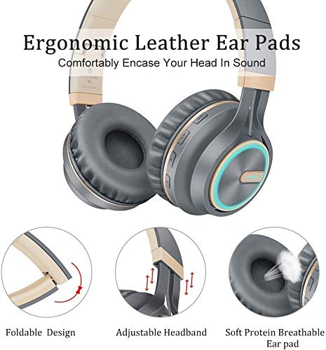 Bluetooth Over-ear, EONANT 4 in 1 BT-08 4.0 Cuffie Bluetooth Senza fili Cuffie Pieghevoli con Microfono/Scheda FM/TF/AUX per PC TV Smart Phone e Tablet (White-Gold)