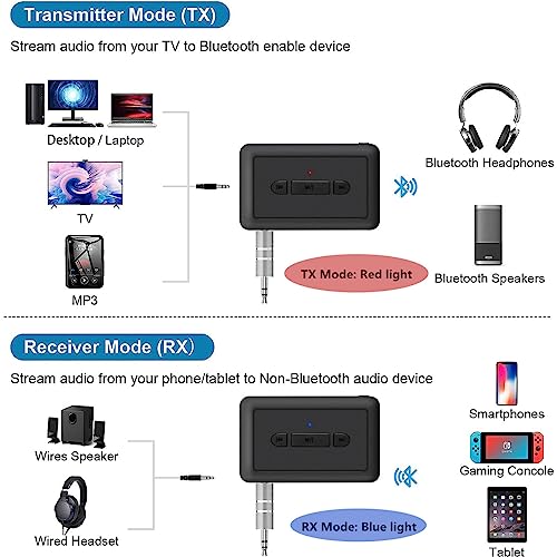 Design 2 in 1: L'adattatore Bluetooth combina un trasmettitore audio Bluetooth(TX) e un ricevitore(RX) in un unico dispositivo con un jack ausiliario da 3,5 mm, per eliminare i cavi aggrovigliati.