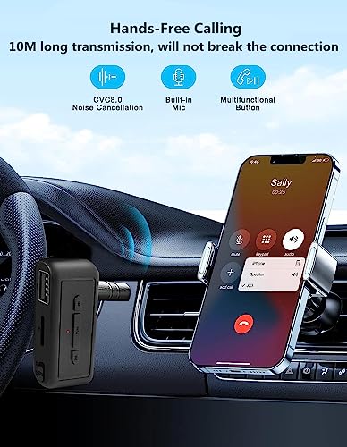 Chiamate a mani libere: L'adattatore Bluetooth Jack è dotato di un microfono incorporato che consente di effettuare chiamate in vivavoce. utilizza la tecnologia di cancellazione del rumore CVC8.0 per rimuovere il rumore e rendere la qualità del suono più chiara. MFB all-in-one per gestire facilmente le chiamate e la riproduzione musicale.