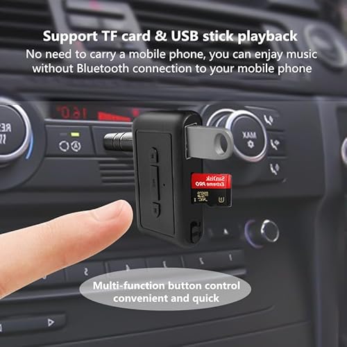 AUX Bluetooth Auto 2 in 1 Bluetooth 5.3 Ricezione e Trasmissione Supporta Riproduzione di U-Disk/TF Card Chiamate in Vivavoce Doppia Connessione Portatile Adattatore Bluetooth Auto